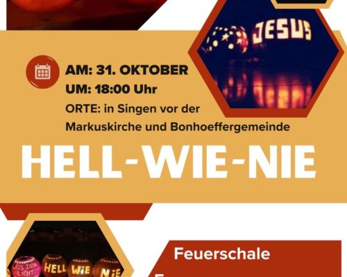 Feuerschalen, Musik, tolle Lieder warten wieder auf Kinder, Eltern und Großeltern am schon traditionellen Fest „Hell wie nie mit Jesus“. Alles ist kostenlos, denn eine große Erkenntnis der Reformation war, dass man bei Gott nicht betteln muss, sondern beschenkt wird. Der CVJM freut sich auf viele Kinder und ihre Familien, die mitfeiern möchten. Und in diesem Jahr auch in…